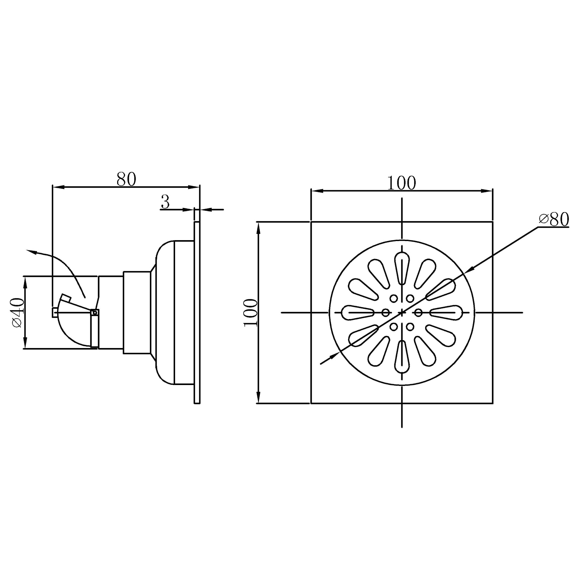 Floor drainer - 100x100mm - 304 SS
