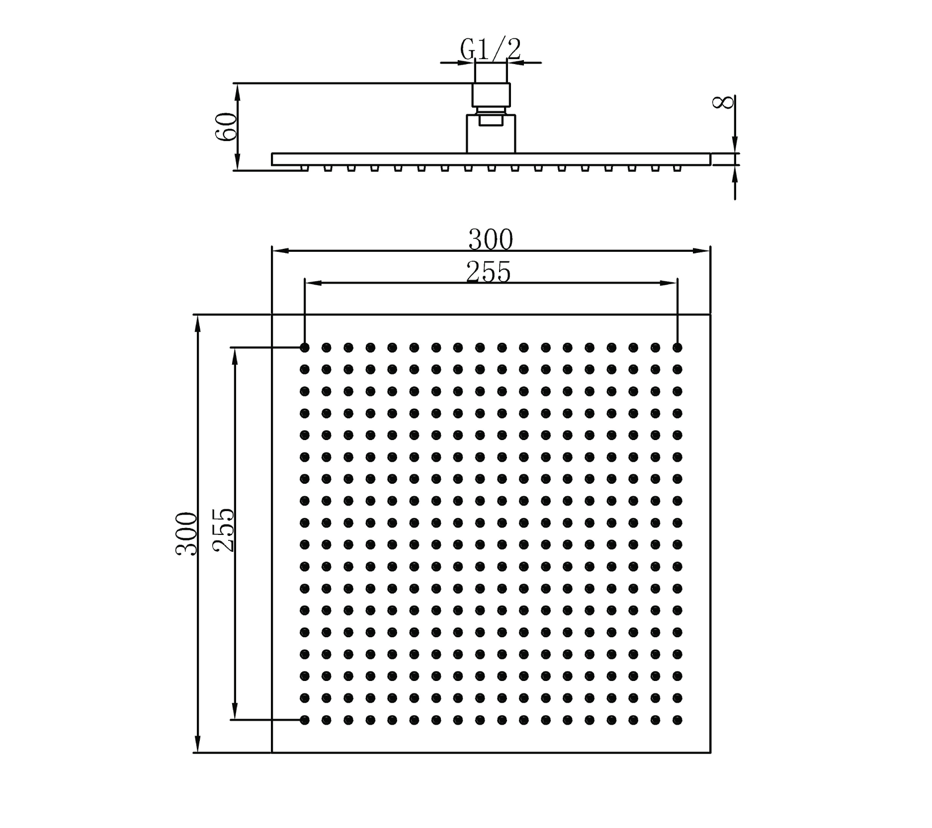 Size: 30cm x 30cm - Shower head with LED - Material: Brass - Colour: Chrome