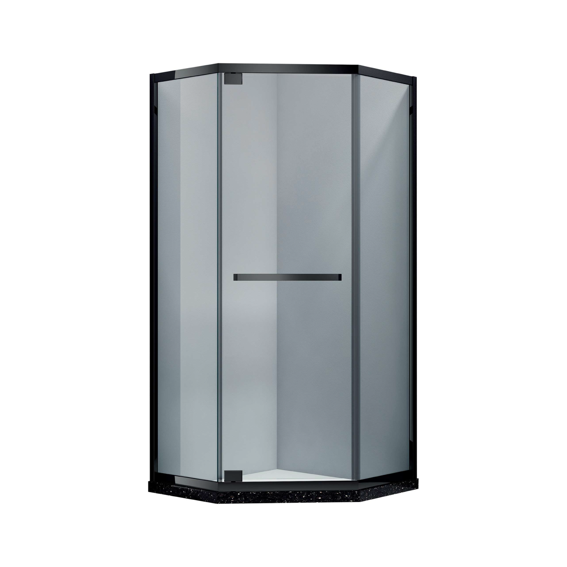 1) Stainless steel frame ( matt black/polished/satin ) 2) Clear color tempered glass in 6mm/8mm/10mm 3) 2 fixed glasses, one open door 4) I shape stainless steel handle 5) Stainless steel rotation *shower tray not included* |