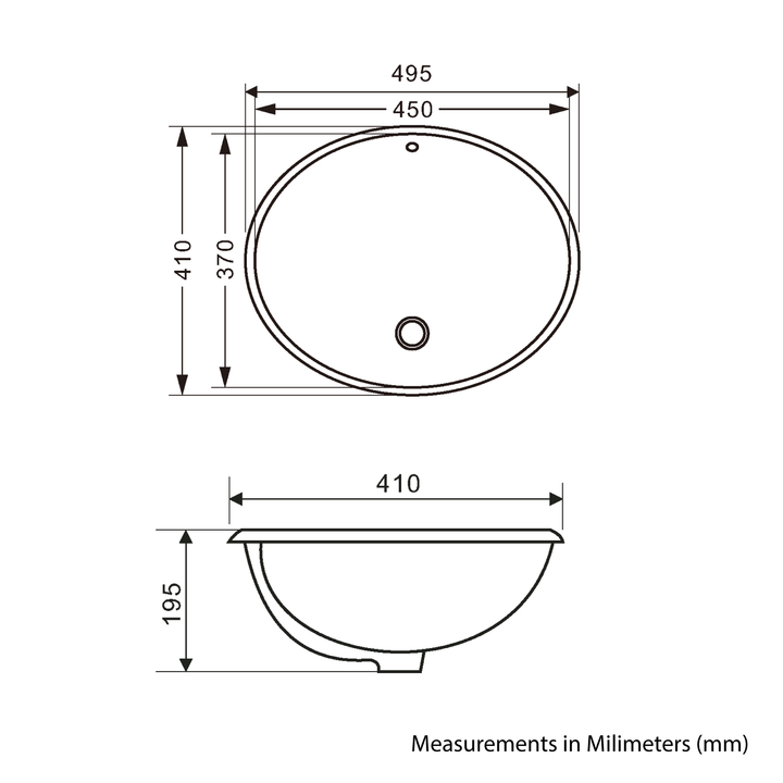 Under counter basin - size:495*410*195mm - Ceramic - Gloss white